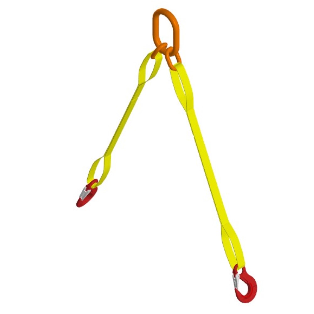 Длина стропа рассчитывается по наиболее удалённым внутренним радиусам закрепляемых элементов. Комплектующие стропа - верхнее овальное звено, синтетическая лента и грузоподъемные крюки - подобраны в соответствии с общей грузоподъемность самого стропа. Цветовая гамма ленты многоветвевых стропов значения не имеет.
