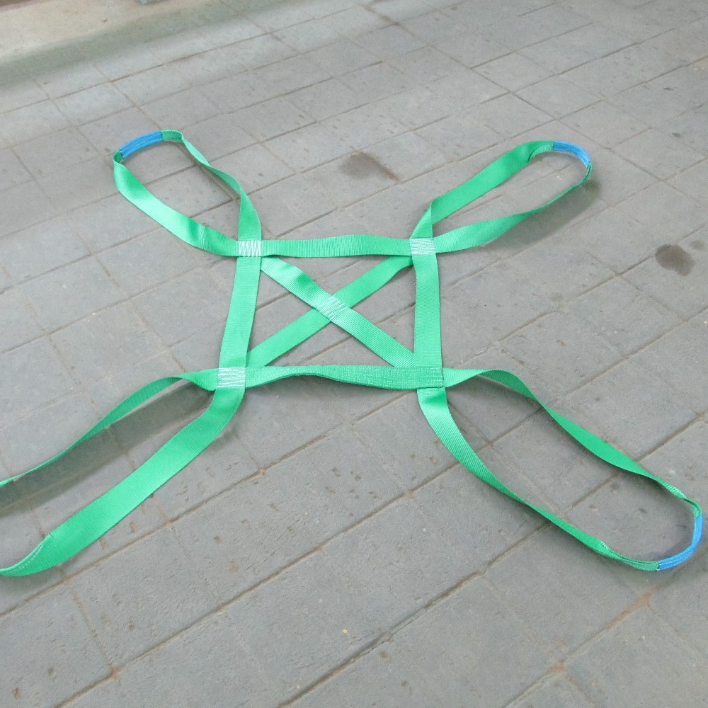Стропы тарные текстильные, выполненные из ленты грузоподъемного назначения, используются для подъема сформированного штабеля пакетов или мешков. Имеют четыре петли для зацепления на крюк грузоподъемной машины и являются многооборотным грузозахватным приспособлением. Возможно различное исполнение тарного стропа как по габаритам, так и по размерам внутренних ячеек стропа. Петли стропа снабжены защитным огоном.