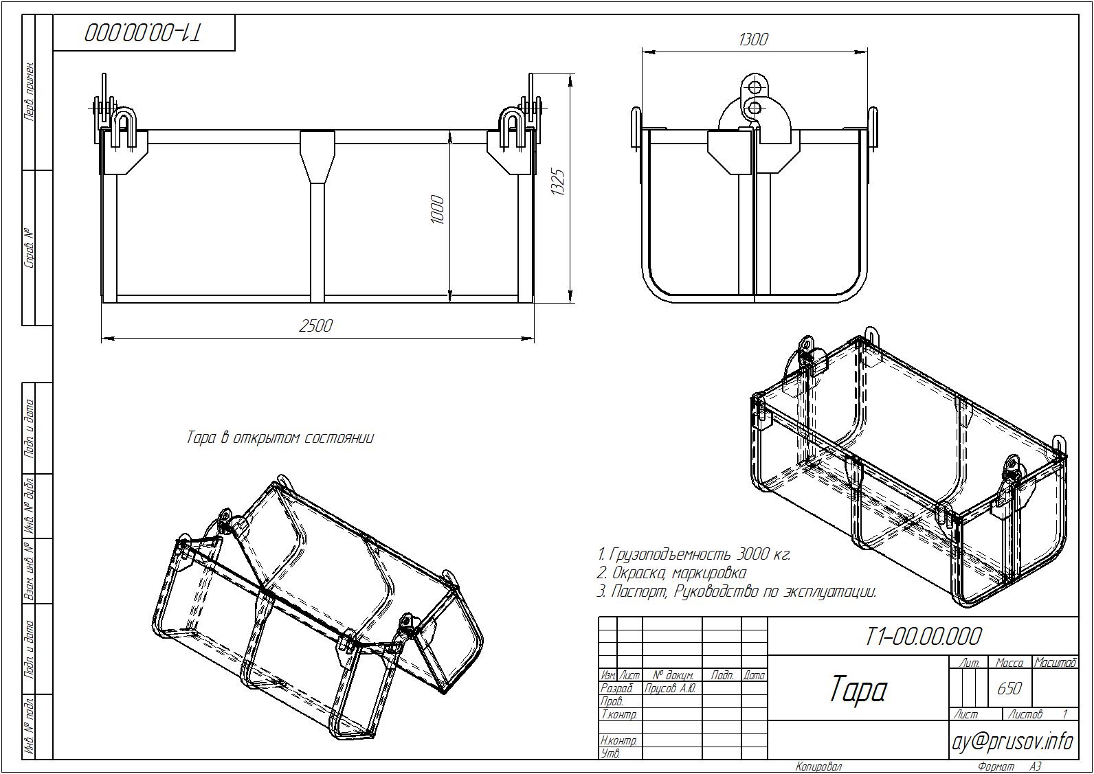 Тара предназначена для навалочных грузов. Грузоподъемность 3 т. Разгрузка осуществляется гравитационным способом путём строповки за боковые проушины.