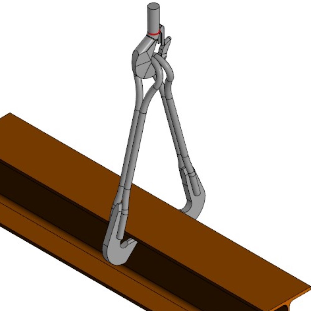 Крюк является грузозахватным приспособлением опорного типа, навешиваемым на конвейерную линию. Предназначен для удержания в пространстве тавровой балки за нижнюю поверхность верхней полки. Используется только в паре. Состоит из опорной нижней пластины, приваренной к специальной проушине.